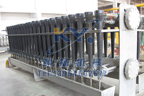 该除渣器由上下两个锥形部组成,纸浆在高压下由上部进浆口沿切线方向进入除渣器,沿锥体作螺旋运动形成涡旋,纸浆中的重杂质在离心力及自身重力的作用下,被分离出并沿着锥形内壁从上锥形部向下锥形部下降,良浆由涡旋产生的中心负压区上行从顶部的出浆口排出;重杂质及部分纤维下沉至下锥体,下锥部装有压力进水管,通入压力水,在冲洗水作用下进行反冲洗涤进一步稀释浆渣,使纤维与杂质分离,并且纤维上浮,重杂质经下锥体出渣口下沉至沉渣桶内。沉渣桶上设有给水口及视窗,供清洗、观察,以便及时排渣。